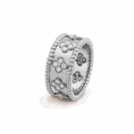 Perlée clovers ring, small model 18K white gold, Diamond
