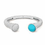 Perlée couleurs bracelet, medium model 18K white gold, Diamond, Turquoise