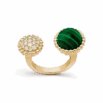 Perlée couleurs Between the Finger ring 18K yellow gold, Diamond, Malachite