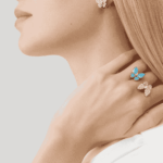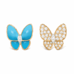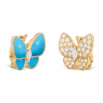 Two Butterfly earrings 18K yellow gold, Diamond, Turquoise