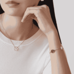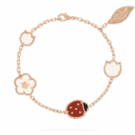 Lucky Spring bracelet, 5 motifs 18K rose gold, Carnelian, Mother-of-pearl, Onyx