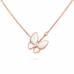 Two Butterfly pendant 18K rose gold, Diamond, Mother-of-pearl