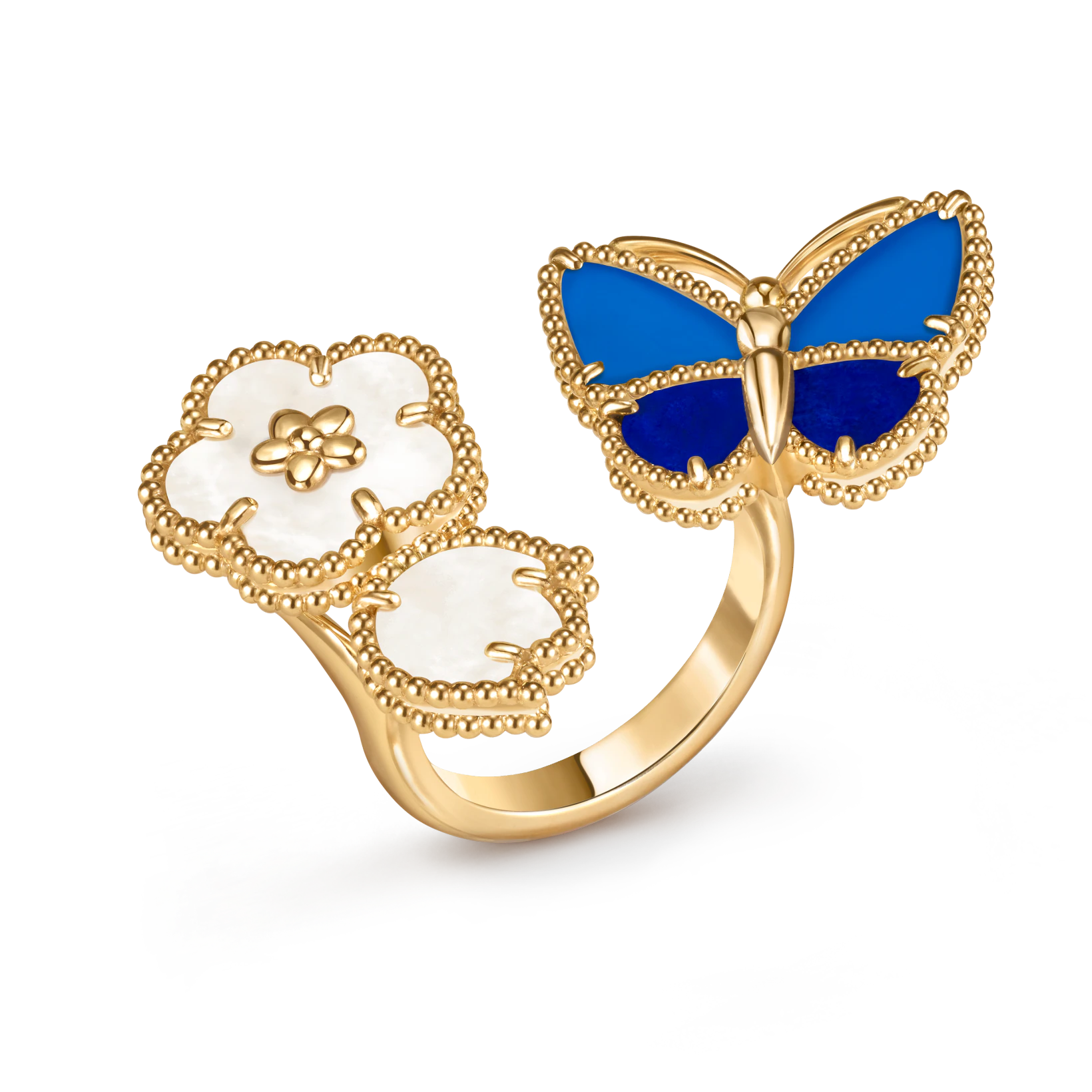18k yellow gold – mother of pearl – blue agate – lapis