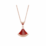 Rose gold DIVAS’ DREAM Necklace Red with 0.28 ct Diamonds,Carnelian