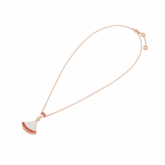 Rose gold DIVAS’ DREAM Necklace Red with 0.1 ct Diamonds,Mother of Pearl,Rubies
