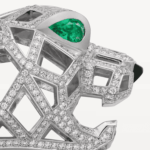 Panther bracelet full diamond in 18k white gold and emerald and onyx