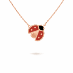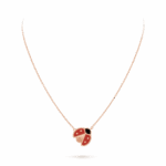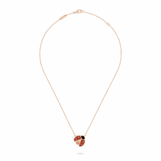 Lucky Spring pendant, open wings ladybug 18K rose gold, Carnelian, Onyx