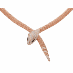 Serpenti 18 kt rose gold necklace set with pavé diamonds on the head and tail, and black onyx eyes