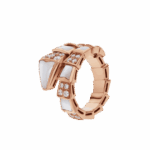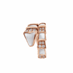Serpenti Viper one-coil ring in 18 kt rose gold, set with mother-of-pearl elements and pavé diamonds.