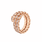 Serpenti Viper two-coil 18 kt rose gold ring set with pavé diamonds