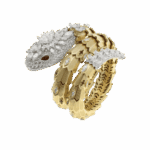 Encircling the wrist with a seductive resplendence, the Serpenti bracelet shines with the gleam of its diamond crown and with the preciousness of its ruby eyes.