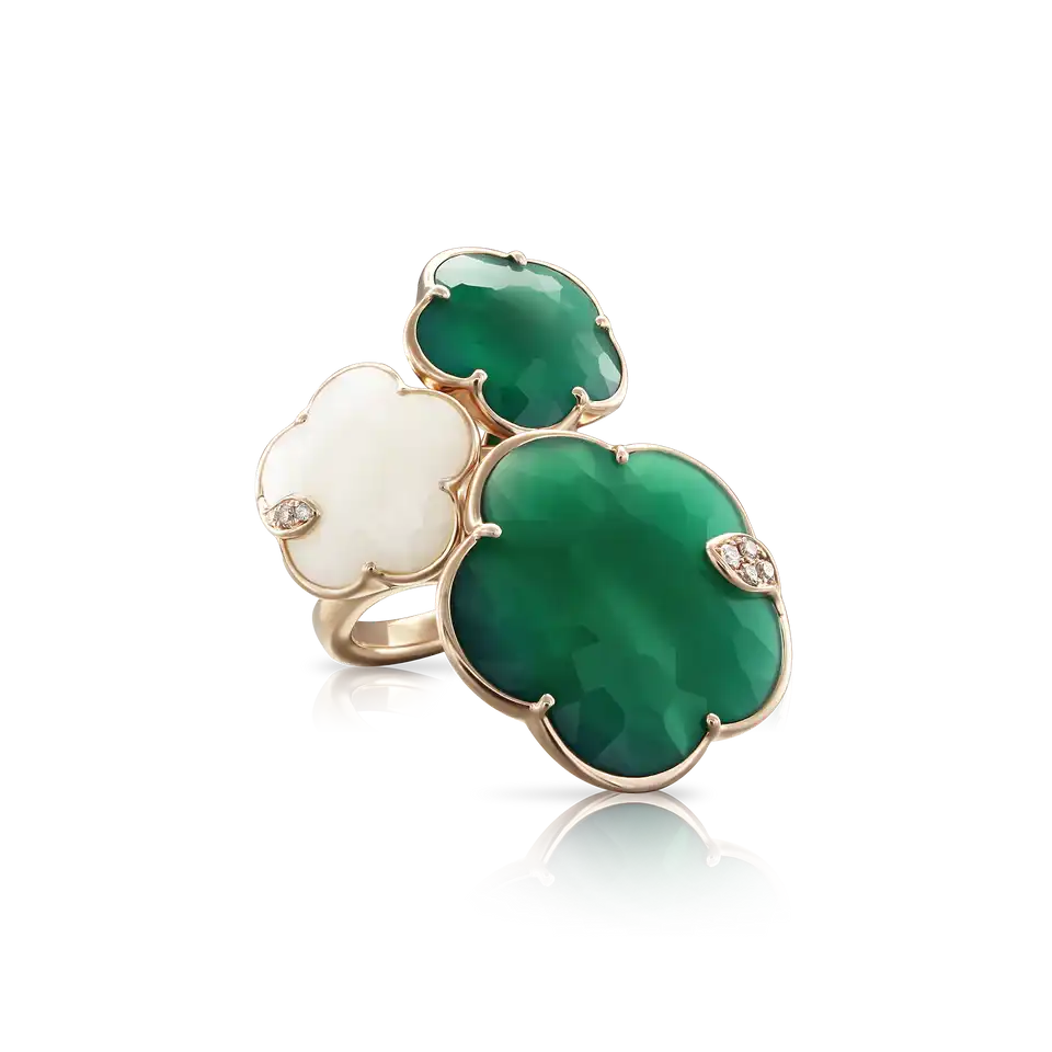18k rose gold-diamonds-mother of pearl-green agate