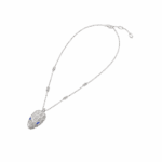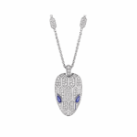 Serpenti necklace in 18 kt white gold set with blue sapphire eyes and pavé diamonds on both the chain and the pendant.
