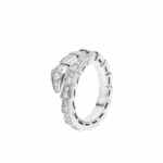 Serpenti Viper 18 kt white gold ring set with pavé diamonds.