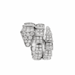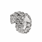 Serpenti Viper two-coil ring in 18 kt white gold, set with full pavé diamonds.